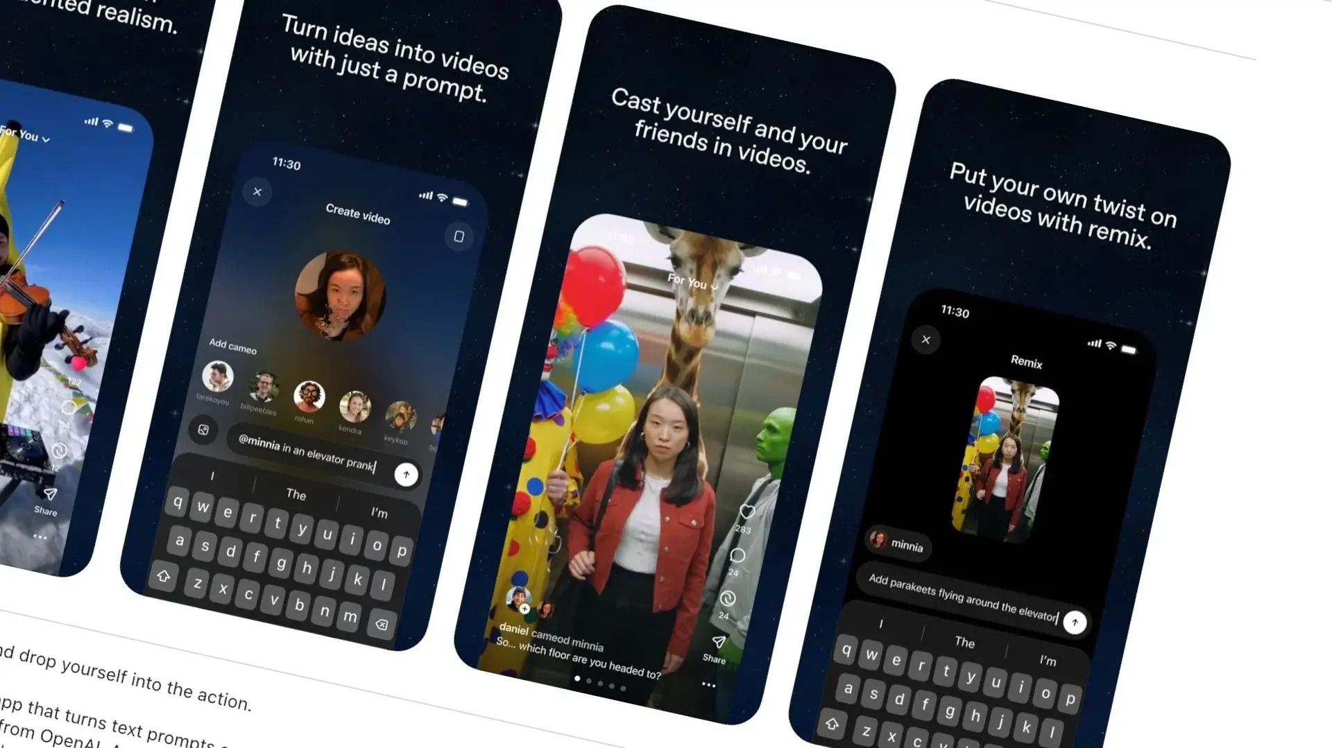 The Sora iOS app lets you create, remix, and drop yourself into scenes via Cameos after a short, on-device verification capture of your face/voice.
